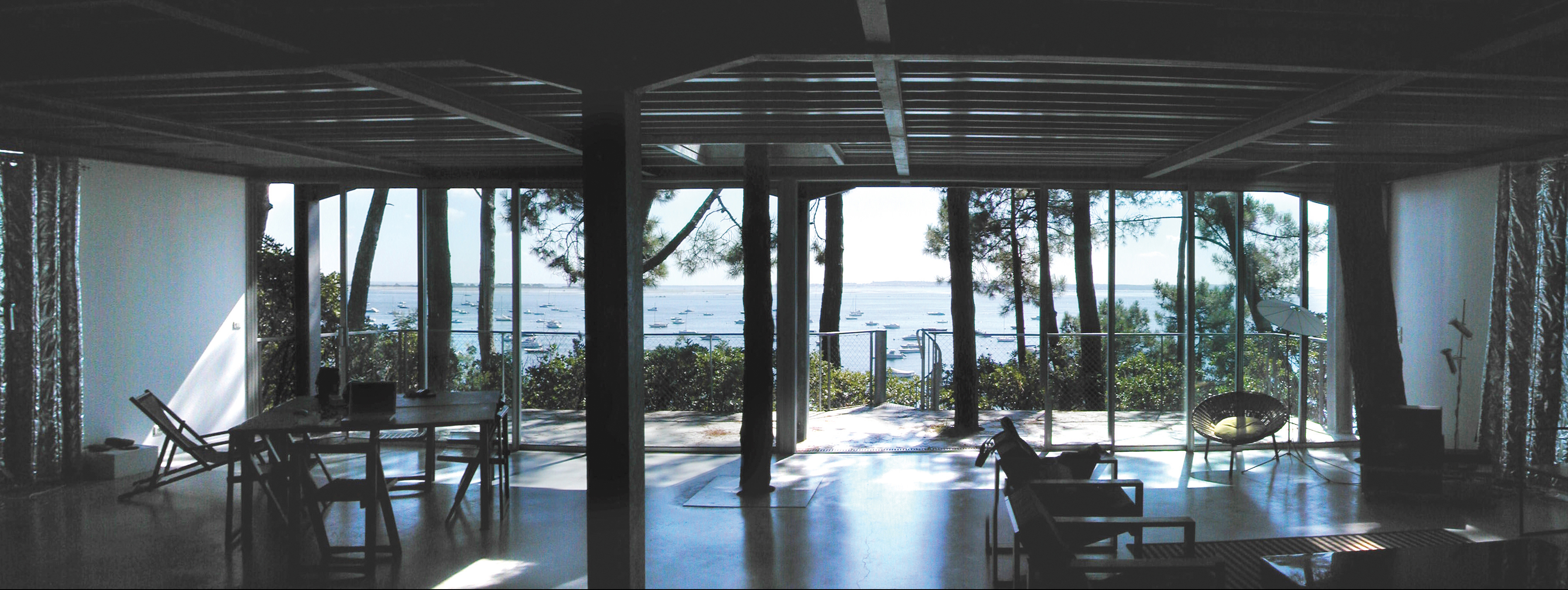 无论是新建或改建,对原有建筑物的尊重贯穿于他们工作的始终。在法国费雷角,他们将一处私人住宅(1998年)建在了阿卡雄湾一块从未开发的土地上,其目的就是将对自然环境的破坏降到最低。建筑师们并没有砍伐现场已有的46棵树,而是培育了原生植被,抬高了房屋地基,并让它处于周围树木的掩映之中,让居住者可以在植物环绕中生活。