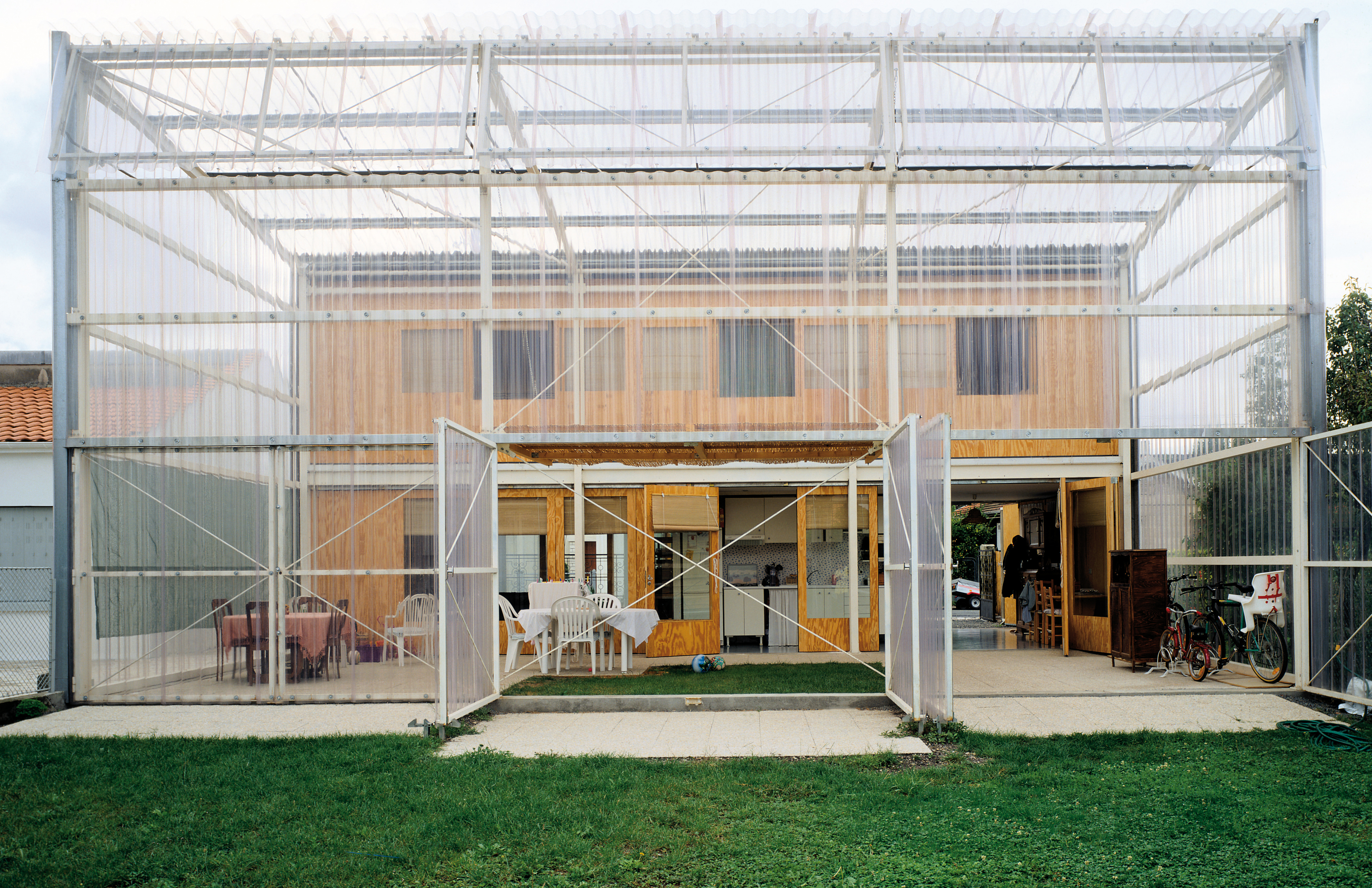 维护居住者的身心健康,也是他们工作的题中之义。他们将温室技术应用于营造生物气候调节的努力,始于法国弗卢瓦拉克的拉达匹住宅(1993年)。他们综合利用自然光线、自然通风、遮阳和隔热等手段,创造了可以人工调节的理想微气候。“从很早开始,我们就在研究植物园的温室,令人印象深刻的脆弱植物、优美的光照和通透度,以及它轻而易举改变室外气候的能力,令人印象深刻。这是一种气氛和一种感觉,我们有兴趣把这种美好引入建筑中。”拉卡顿说道。