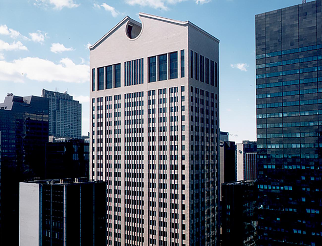 By the fifties, Johnson was revising his earlier views, culminating with a building that proved to be one of the most controversial of his career—the AT&T headquarters in New York with its so-called "Chippendale" top.